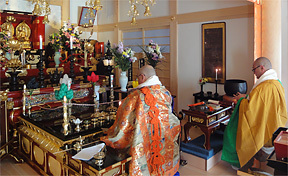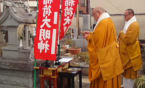 眞乗寺について 年中行事 私たちの宗団 眞乗寺では各法要を下記日程にて勤修いたします。お檀家の皆様、一般の方々も参拝できますので、どうぞご来山ください。 初午(稲荷大明神法楽) 午前11時 春彼岸会法要 午前11時 仏生会(花まつり) 8日午前11時 盆供 1日午前10時 施餓鬼会法要 19日午後3時 秋彼岸会法要 午前11時 興教大師報恩理趣三昧 午前11時 初午 彼岸会法要 仏生会 六地蔵 本堂内 法要控室
